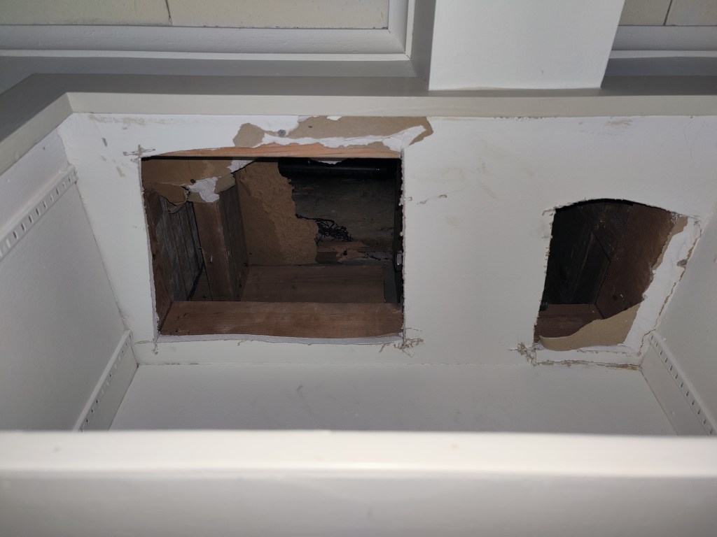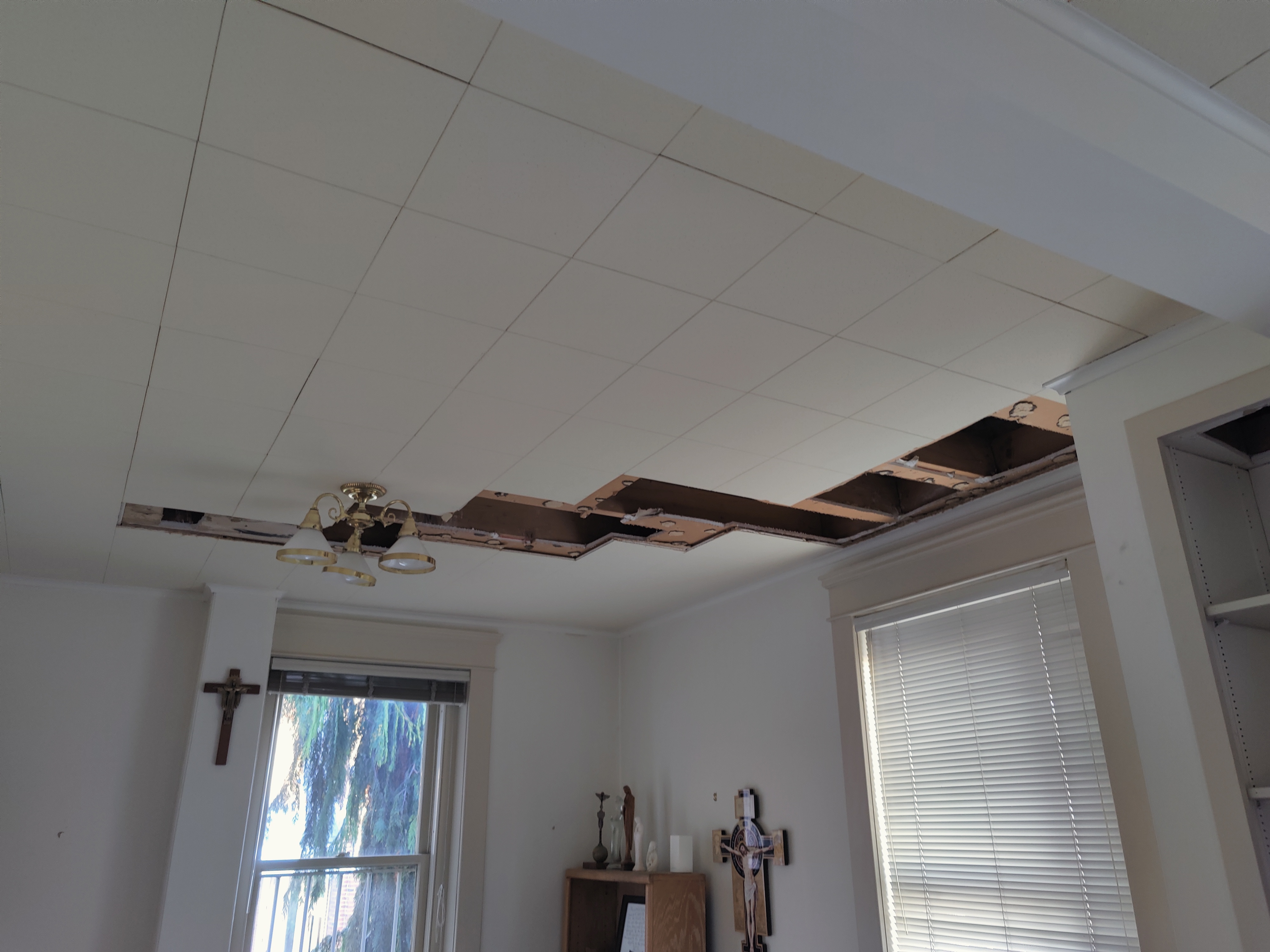 In the process, though, we discovered that when the house keepers’ quarters were converted into the current pastor’s office, the ceiling was lowered by about a foot. We had no idea! And neither did the plumber, who was frustrated by the sheer amount of material he had to cut through.